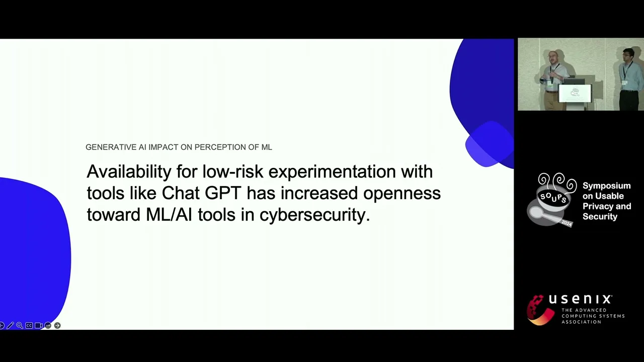 In this talk at the USENIX SOUPS 2024 conference, I present research on designing AI-driven cybersecurity tools alongside product designer Siddharth Hirwani. Drawing on qualitative research with security analysts, we explore when and how AI should surface insights within complex workflows, emphasizing explainability, trust, and minimizing bias. We share how these findings informed real product features, including improving transparency in model outputs and designing AI-generated insights that help analysts make faster, more informed decisions.